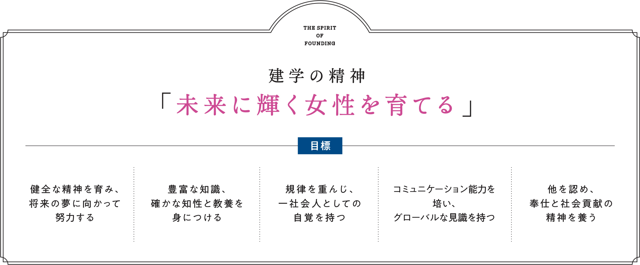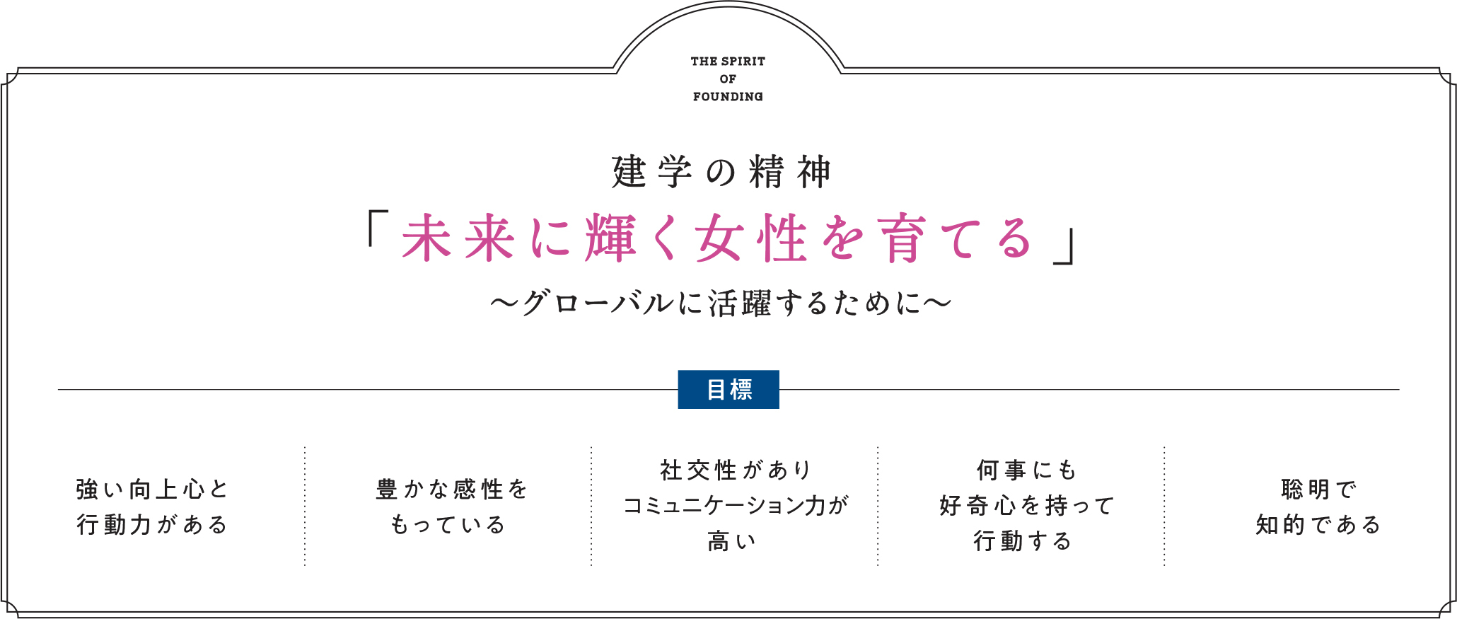 豊かな学力と知識・優しい人間力を磨き、キラキラと”未来に輝ける女性”になりましょう。